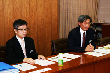 | 福岡県商工部中小企業振興課から説明 | 説明を受ける公明党神奈川県議団 |