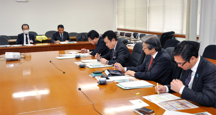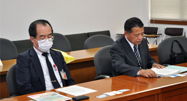口蹄疫の事情を聴取したのち、午後2時から宮崎県危機管理局 危機管理課 防止推進担当の専門主事である三浦秀明氏、同課長補佐の飯干 伸一氏から約40分間にわたって両氏と新燃岳の災害の概要及び質疑を行った。